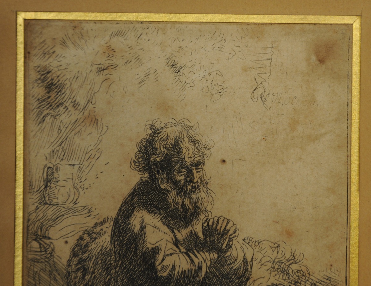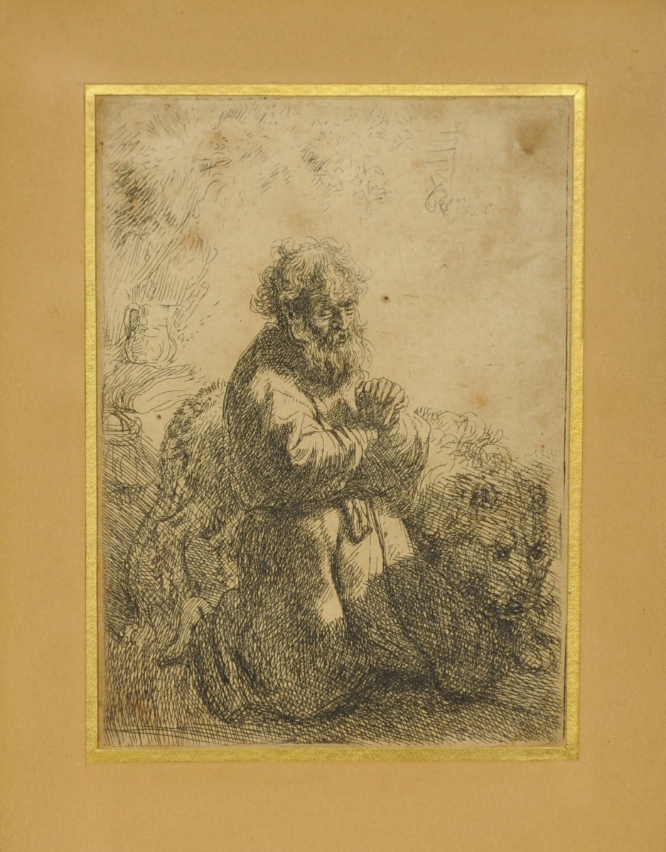Eau-forte. Belle épreuve insolée d'un tirage légèrement tardif. Bord supérieur collé, et reste de montage au verso. Rousseurs, quelques piqures, petites traces de plis, trace brunie sur le bord gauche, filet de marge. Cadre.