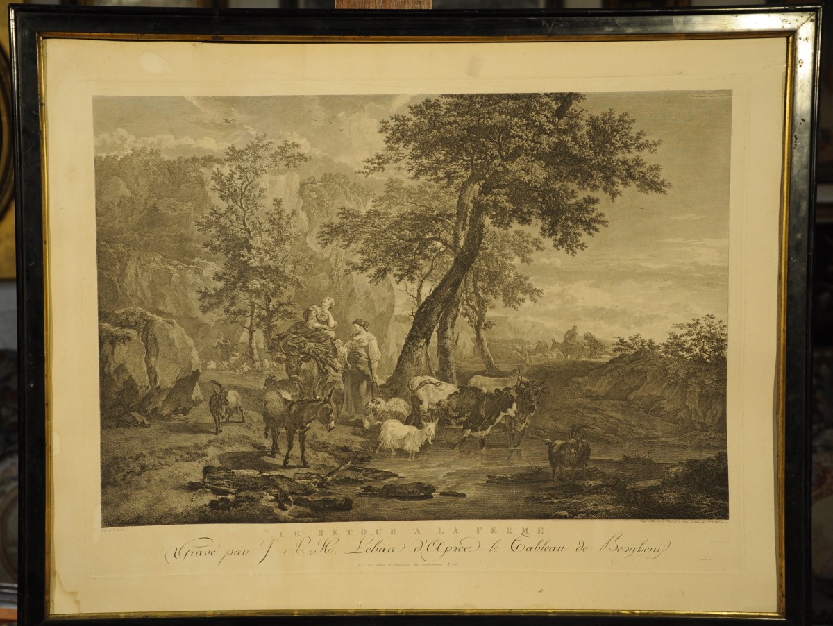 "Le Retour à la Ferme", d'après Nicolas Berghem. 58 x 74 cm.