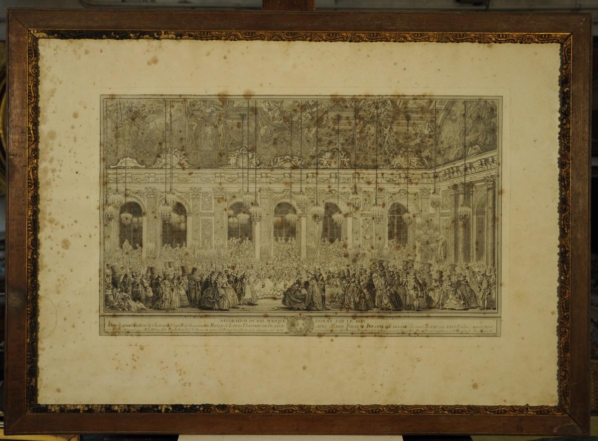 "Décoration du Bal Masqué donné par le Roy dans la Grande Galerie du Château de Versailles à l'occasion du mariage de Louis Dauphin de France avec Marie-Thérèse Infante d'Espagne la nuit du XXV au XXVI février MDCCXLV", 67 x 96,5 cm.