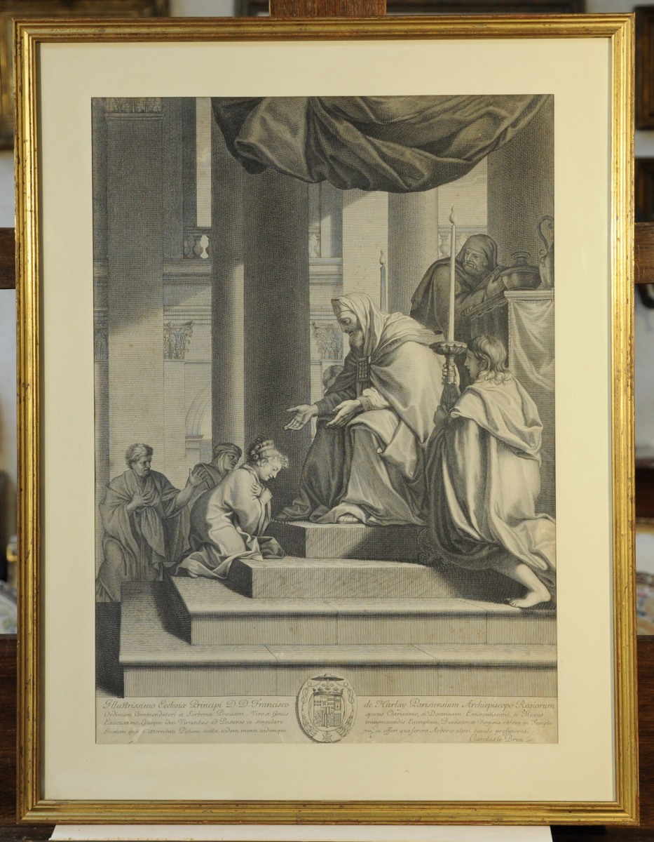 - "La Présentation de Marie au Temple", d'après Charles Le Brun. GRAVURE, XVIIIème. 54 x 39 cm.