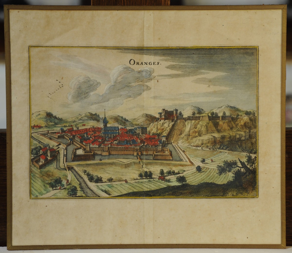 - Vue de la ville d'Orange. GRAVURE rehaussée, XVIIIème. 19 x 28,5 cm.