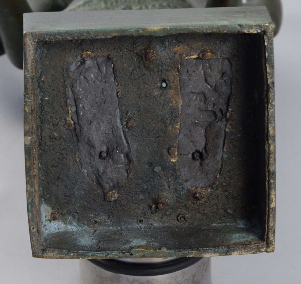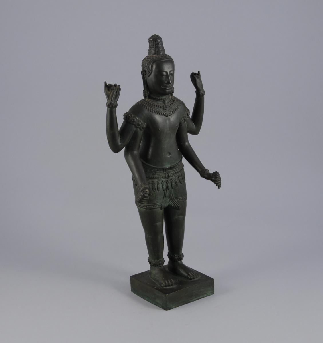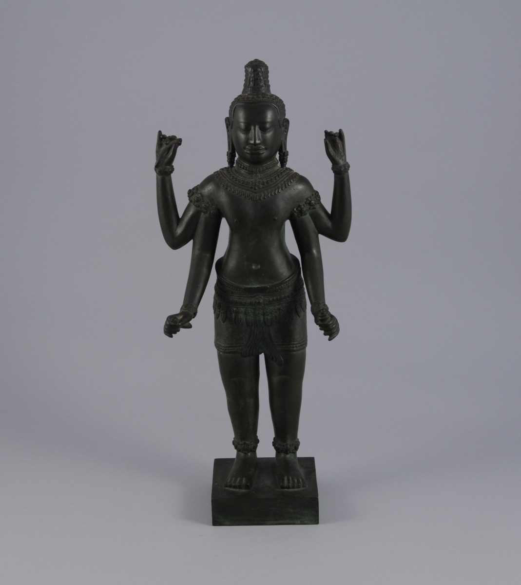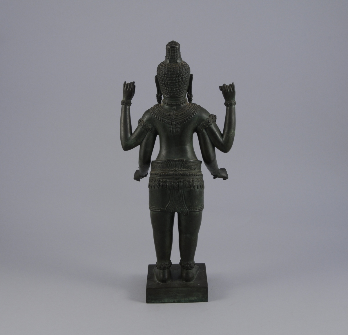 STATUETTE en bronze à patine verte figurant une divinité à quatre bras.