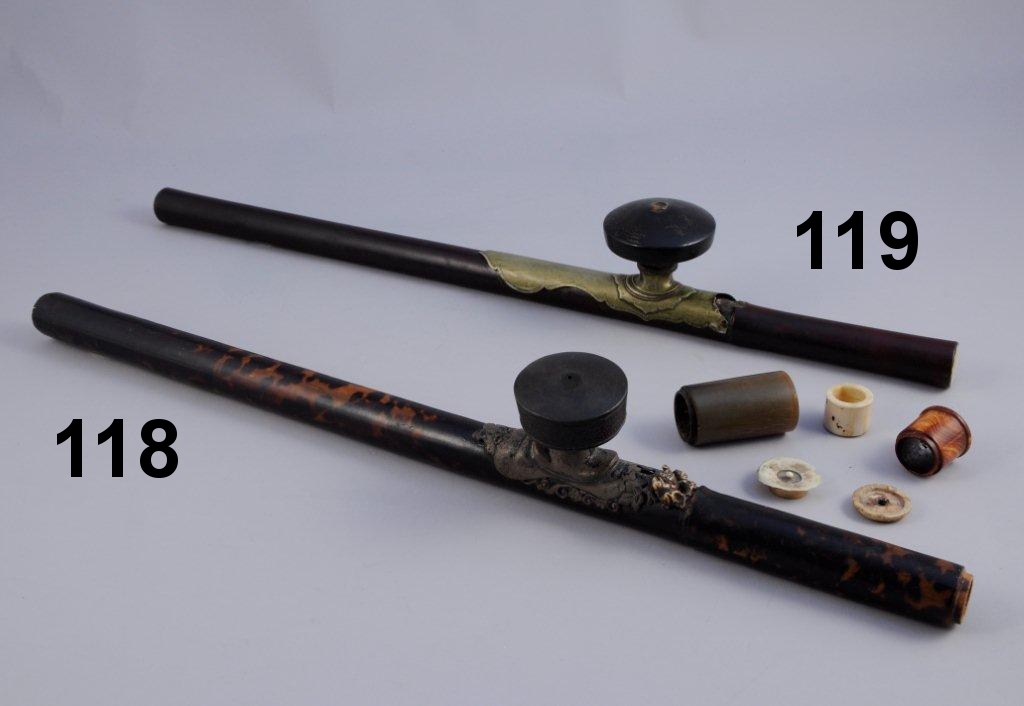PIPE À OPIUM en bois (petit manque) bague de raccord en laiton.