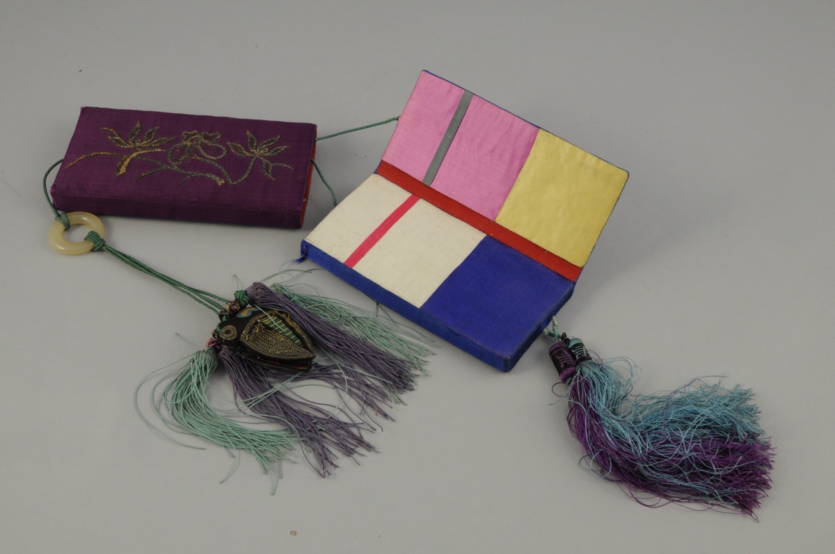 Étui : Haut. 14,5, Larg. 7,5 cm. (le cordon brisé)