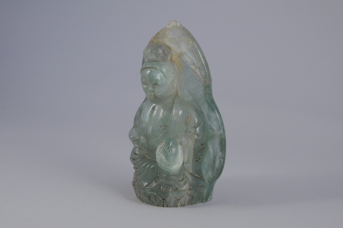 BOUDDHA en pierre dure verte (fluorine ?) sculptée en haut relief.