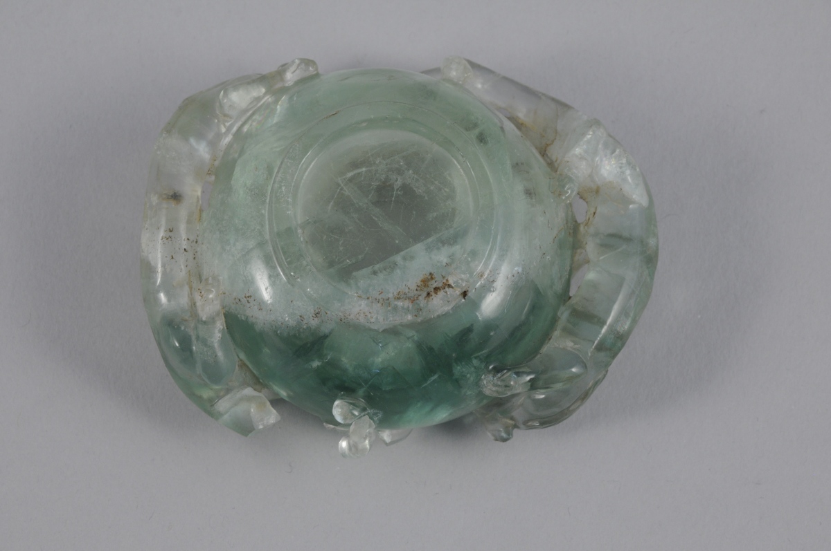 FLACON en pierre dure verte (fluorine ?) sculpté de deux...