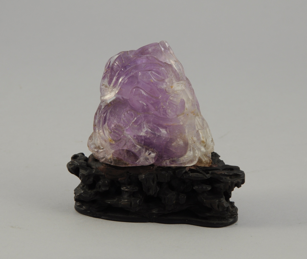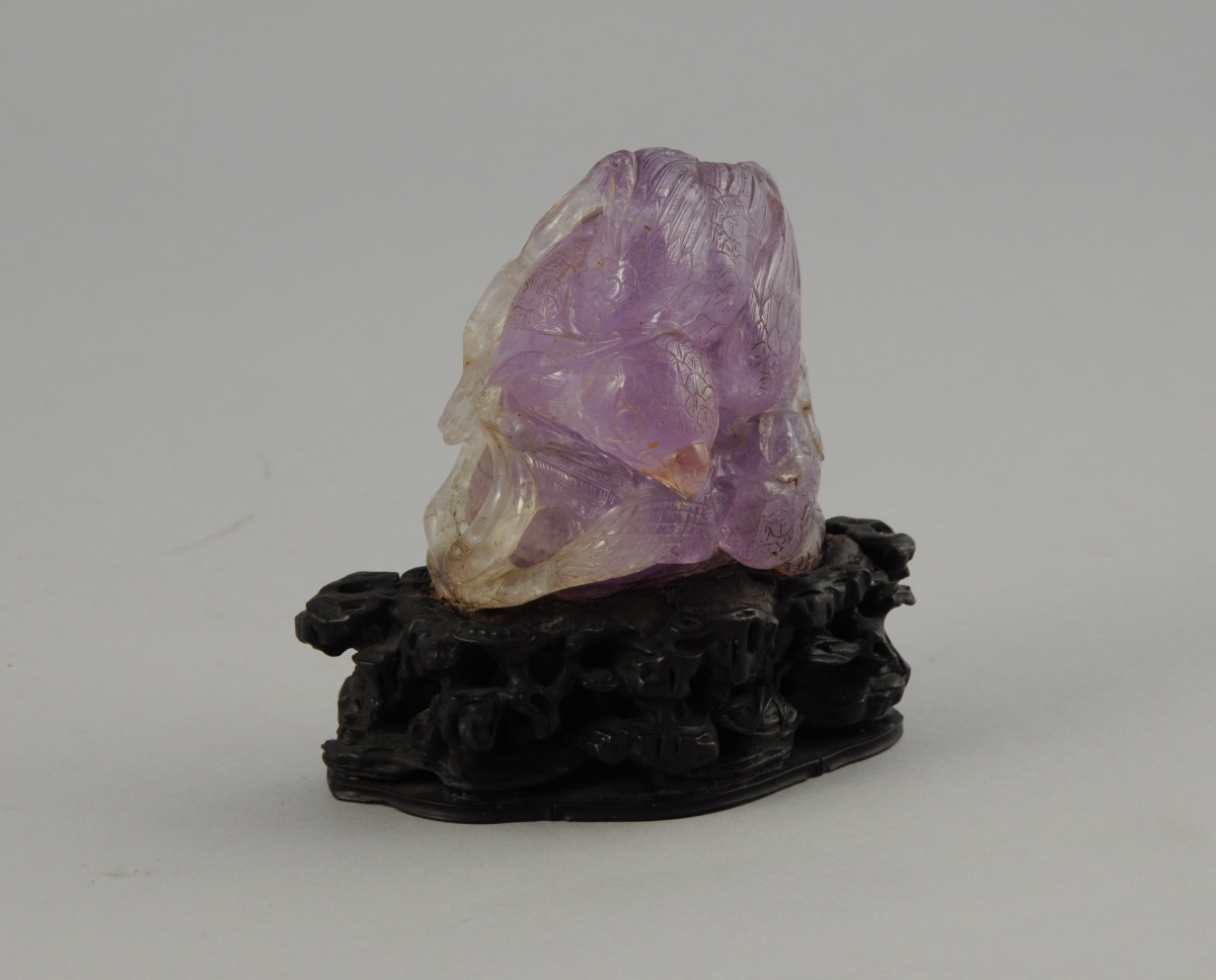 STATUETTE en améthyste (fluorite ?) figurant deux moineaux.