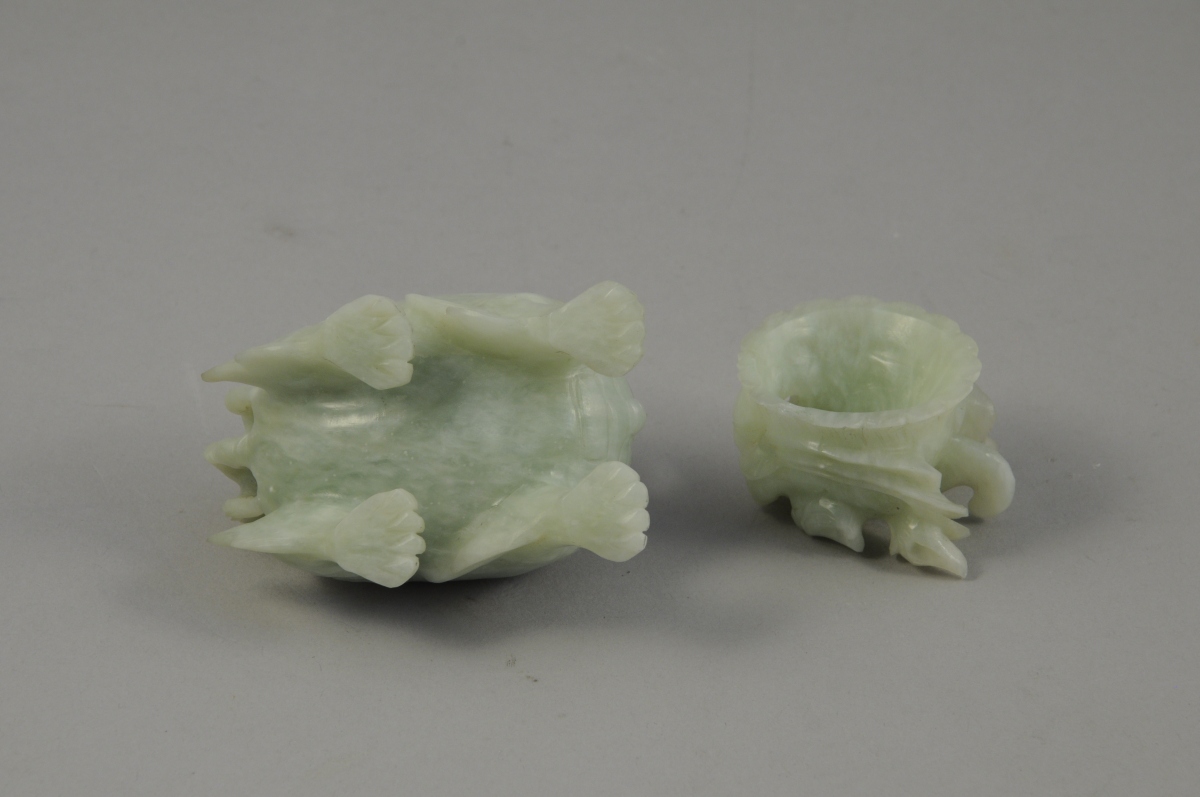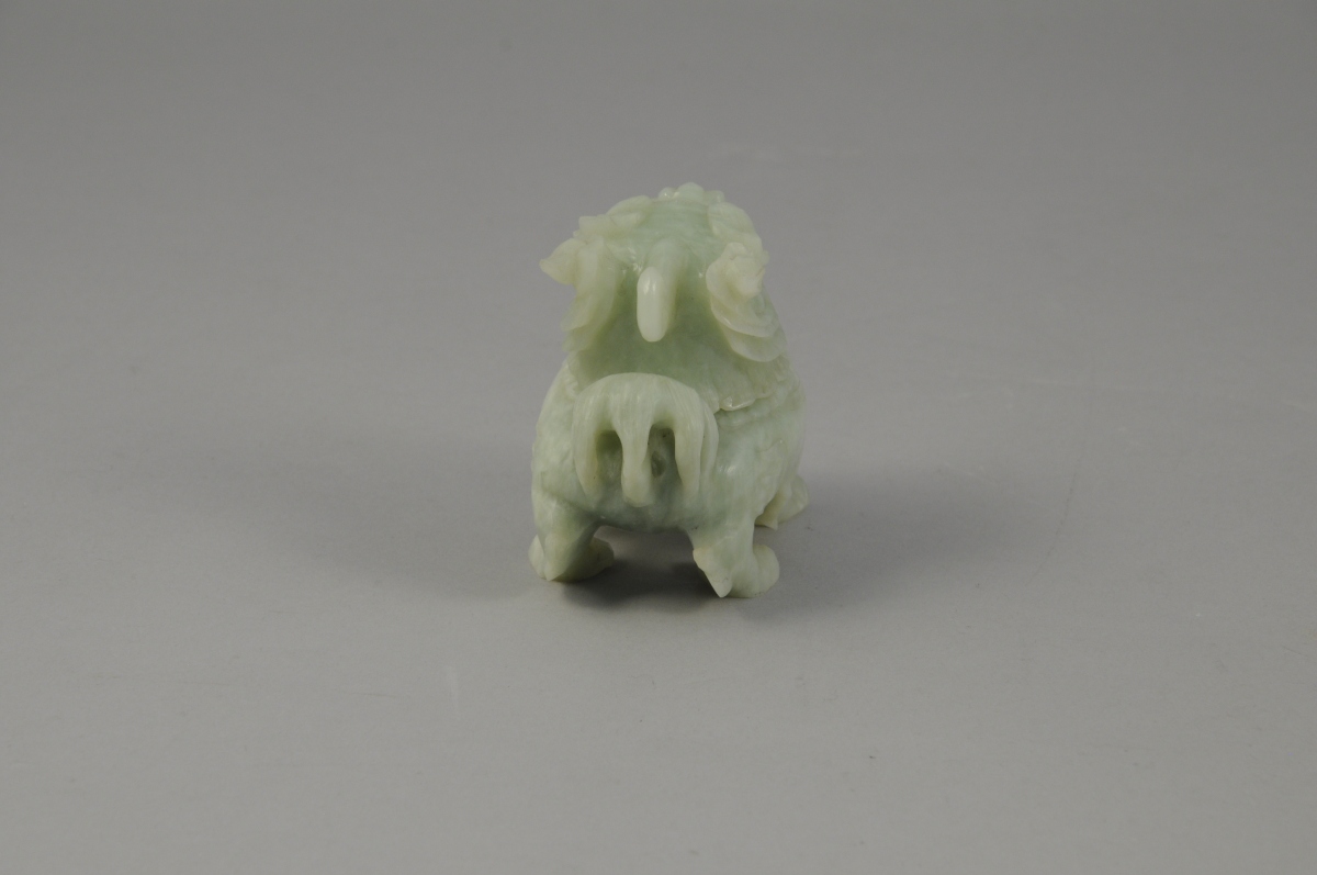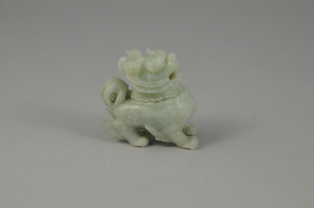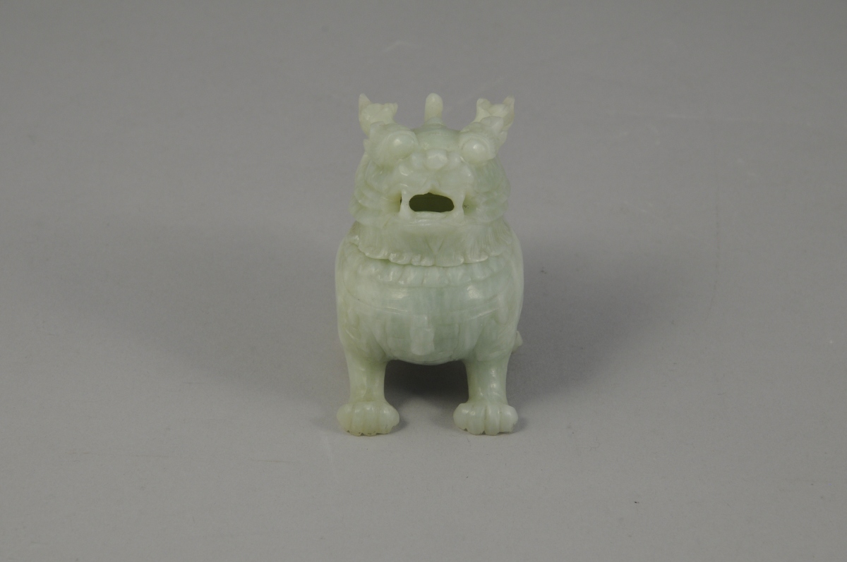 RÉCEPTACLE zoomorphe en jade en forme de lion, la tête en guise de coucercle.