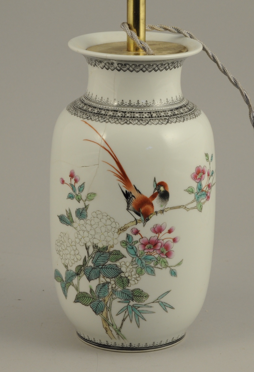 VASE en porcelaine à décor polychrome d'oiseaux branchés sur des prunus.