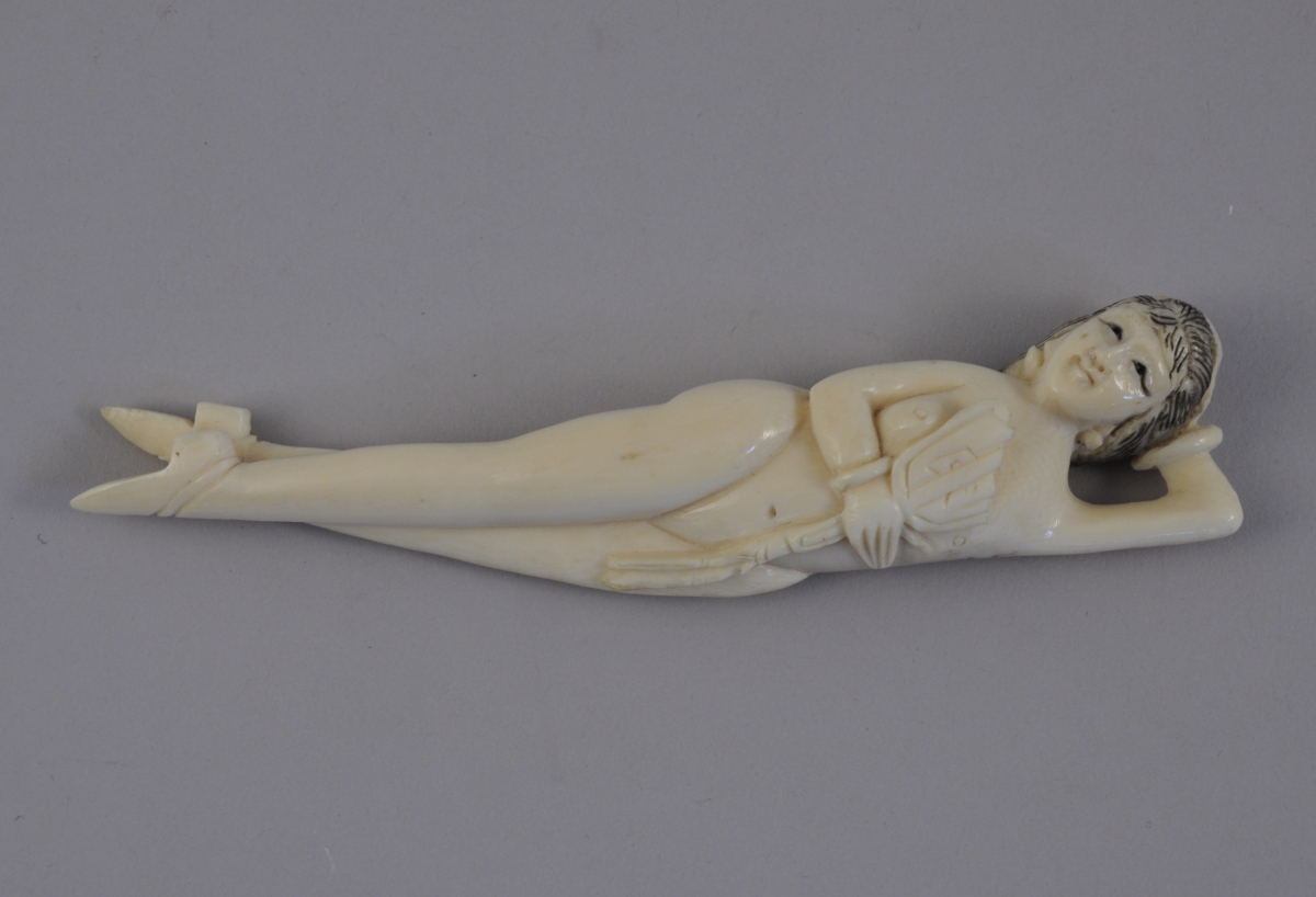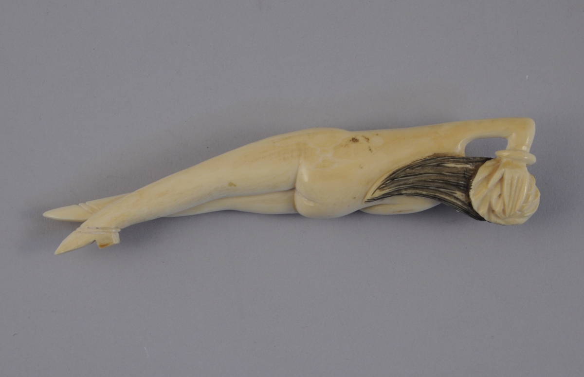 FEMME-MÉDECINE en ivoire sculpté. Les cheveux laqués noir.