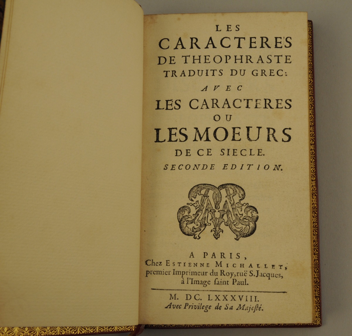 Les Caractères de Théophraste traduits du grec avec les Caractères ou les Moeurs de ce siècle.