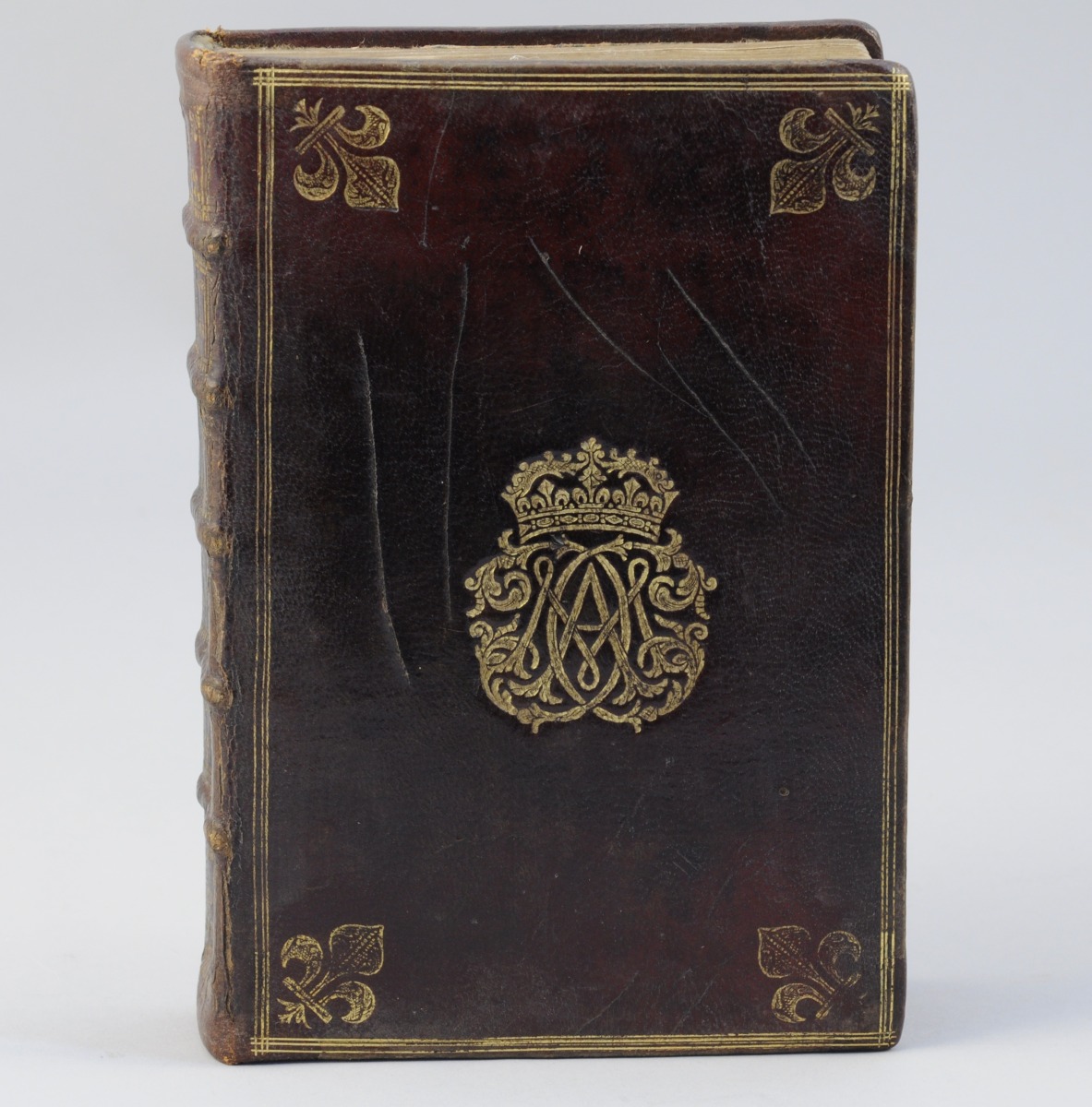 In-8, plein veau rouge, tranches dorées. Chiffre de Marie Anne Christine de Bavière (1660-1690), Dauphine de France, épouse du Grand Dauphin, au centre des plats ; fleurs de lys en angle.. (Accidents sur le plat supérieur. Mouillures. Cachet gras sur le titre).