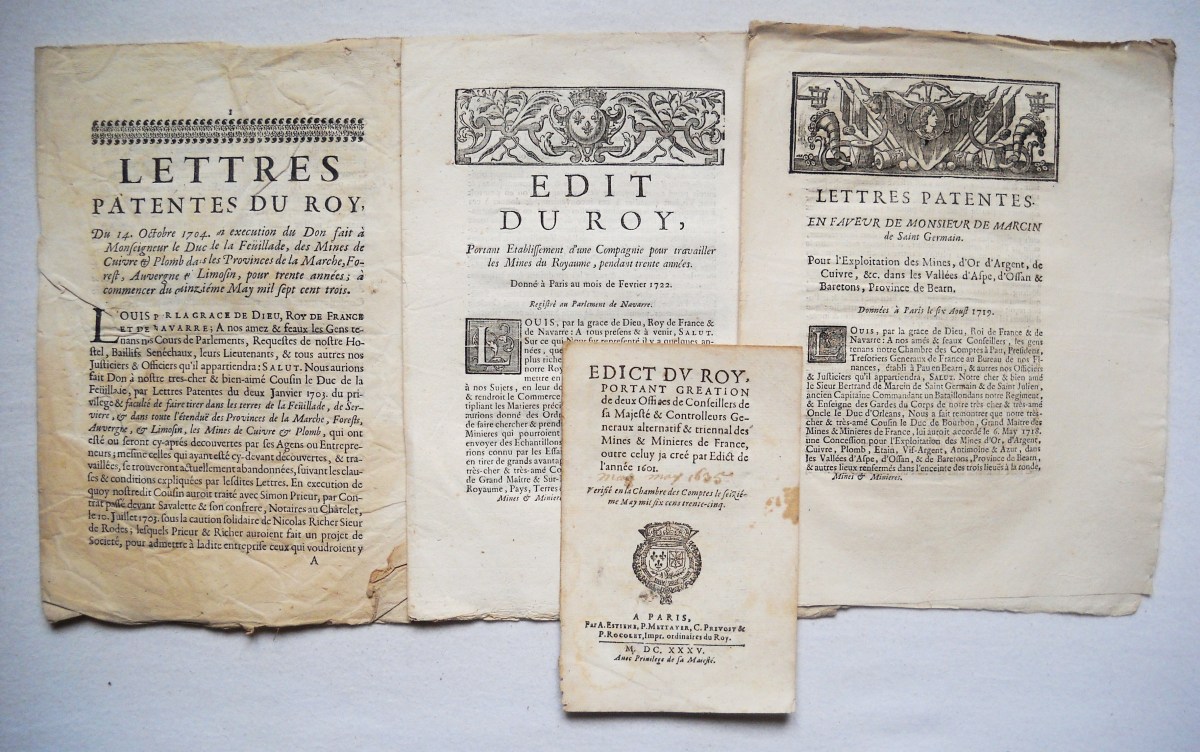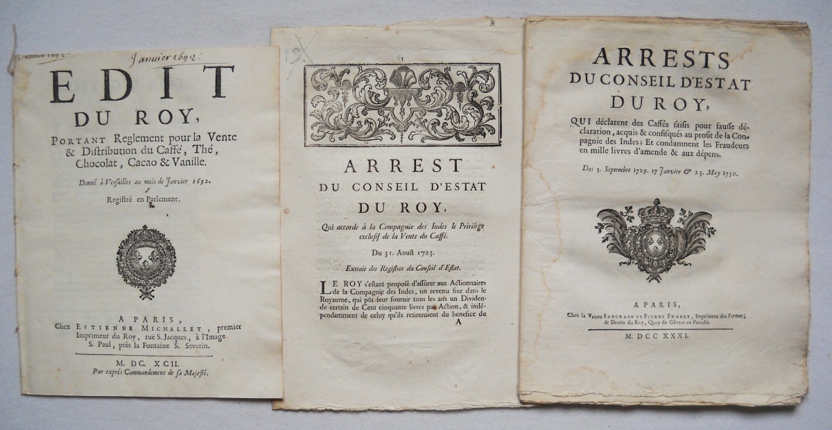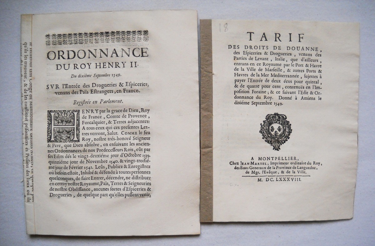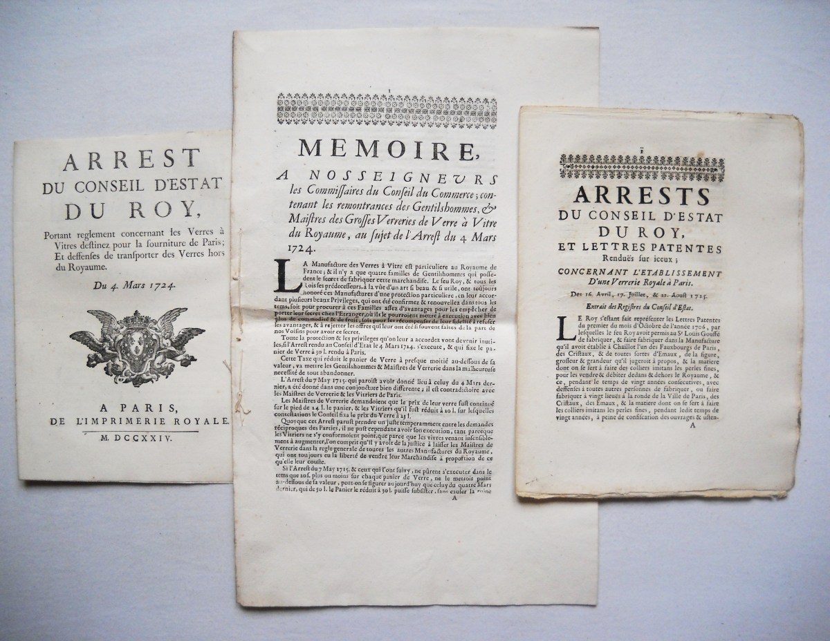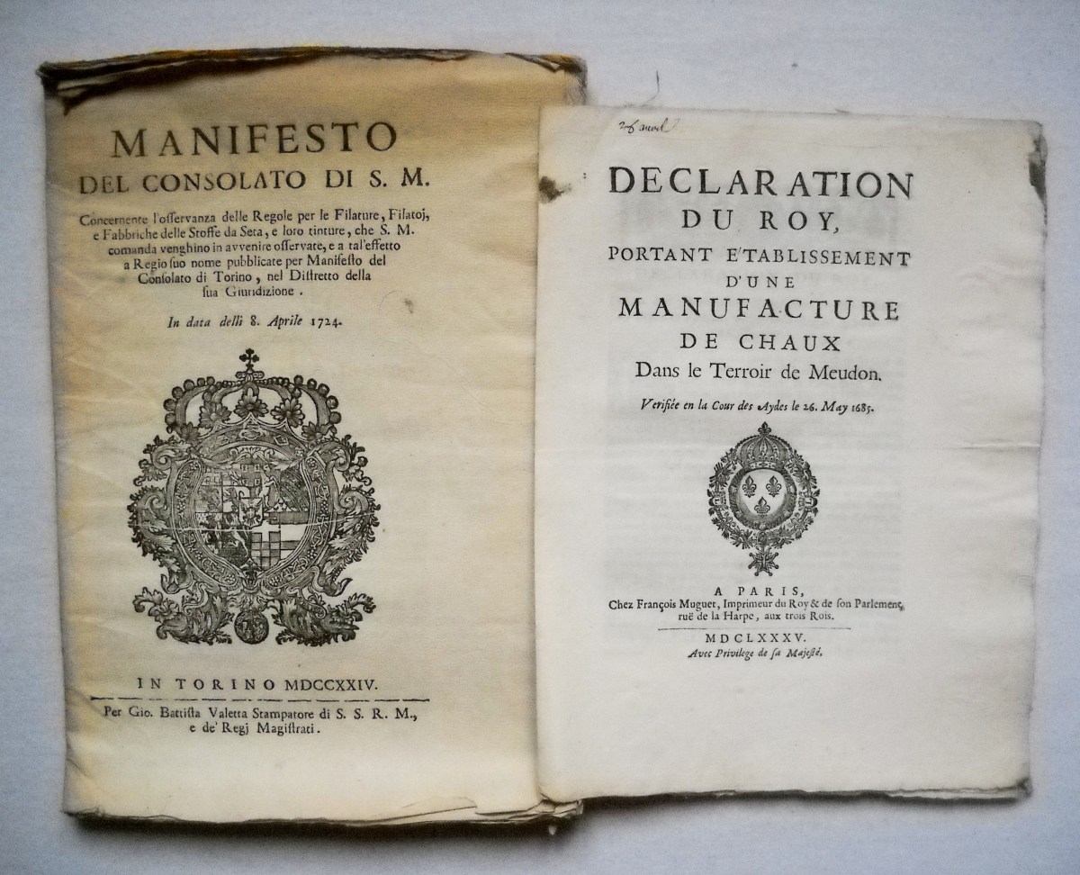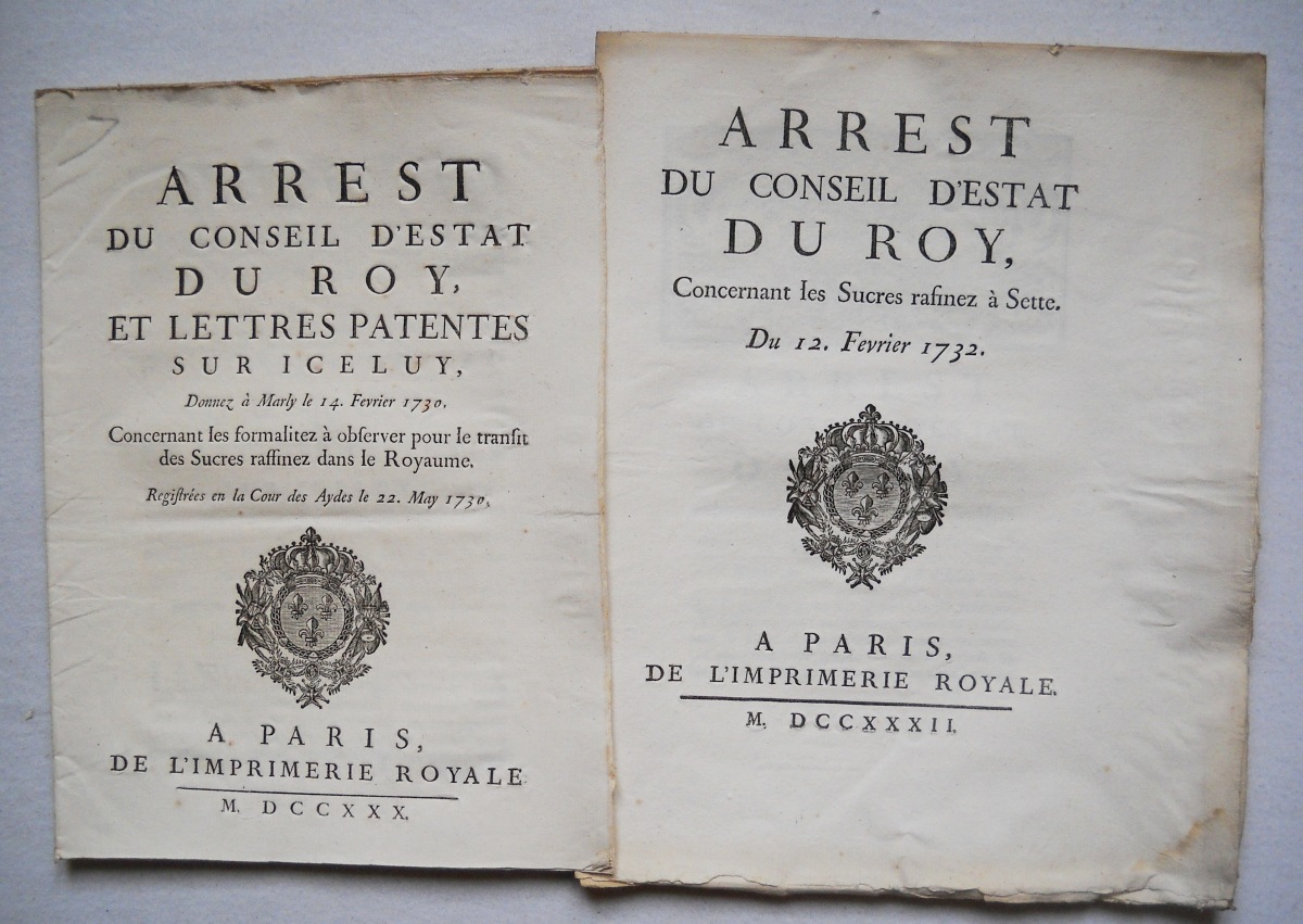 [COMMERCE - PRODUITS COLONIAUX - FER et FORGES - MANUFACTURES ROYALES] - Lettres patentes, édits, déclarations, ordonnances, arrêts du conseil d'état du roi, et divers, relatifs à la fabrication et au commerce des biens en provenance des colonies, des manufactures royales, des forges, etc.