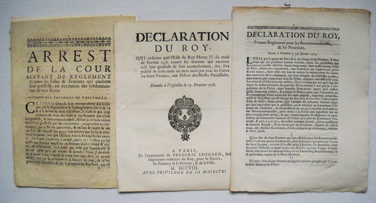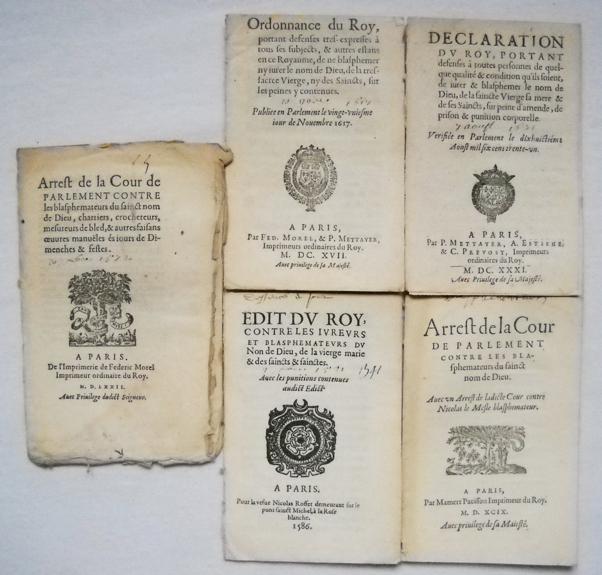 [POLICE] - Lettres patentes, édits, déclarations, ordonnances, arrêts du conseil d'état du roi, arrêts de la cour de parlement, ordonnances et sentences de police et divers, relatifs au rôle de la police au niveau de la religion, la discipline des murs et la tranquillité publique.
