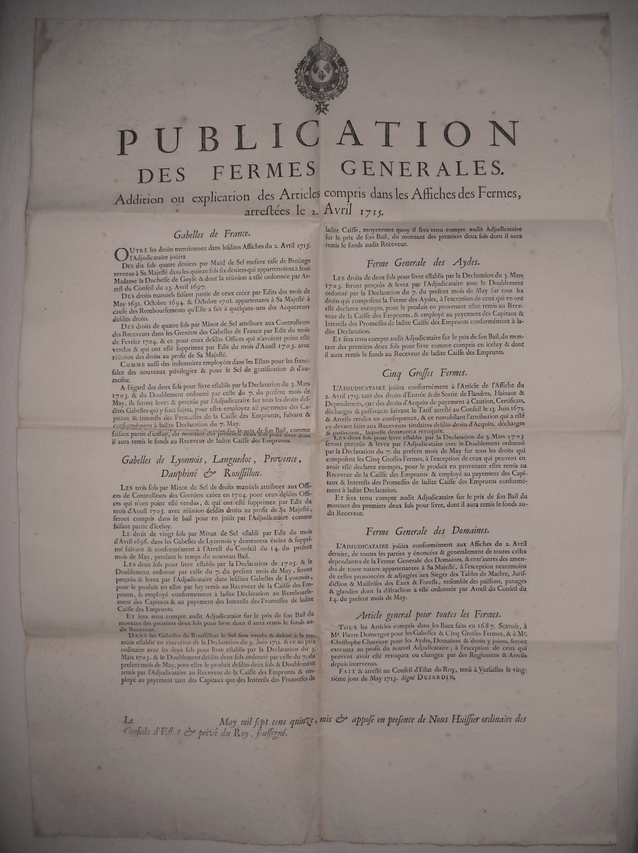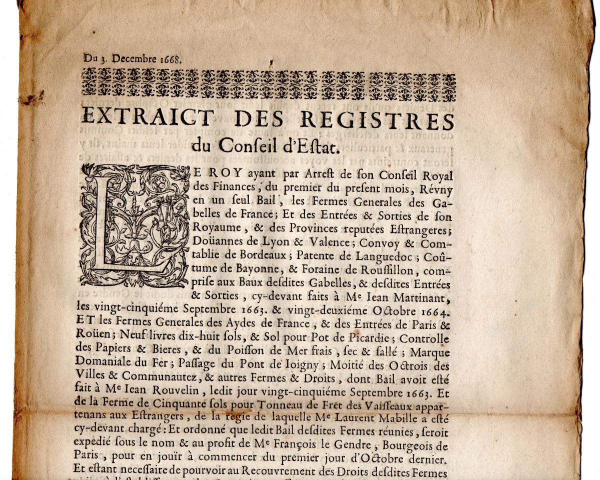 ![Lot 76 - [FERME GÉNÉRALE] - Importante réunion de déclarations, édits, lettres patentes... [FERME GÉNÉRALE] - Importante réunion de déclarations, édits, lettres patentes...](<150:ddoc-447418-73acaddf6e5af062c96826fd242bd785-79_8.jpg, <480:ddoc-447419-8ce8bbd99b21584c92215d7ad54fdac6-79_8.jpg, <640:ddoc-447420-08e6f25982ff5b019c7868648ec5d72f-79_8.jpg, <900:ddoc-447421-b226108ec43a86b8bc968051d2ecca54-79_8.jpg, >900:ddoc-447417-8eba27e784547d1ae1b0f7368acfef52-79_8.jpg)