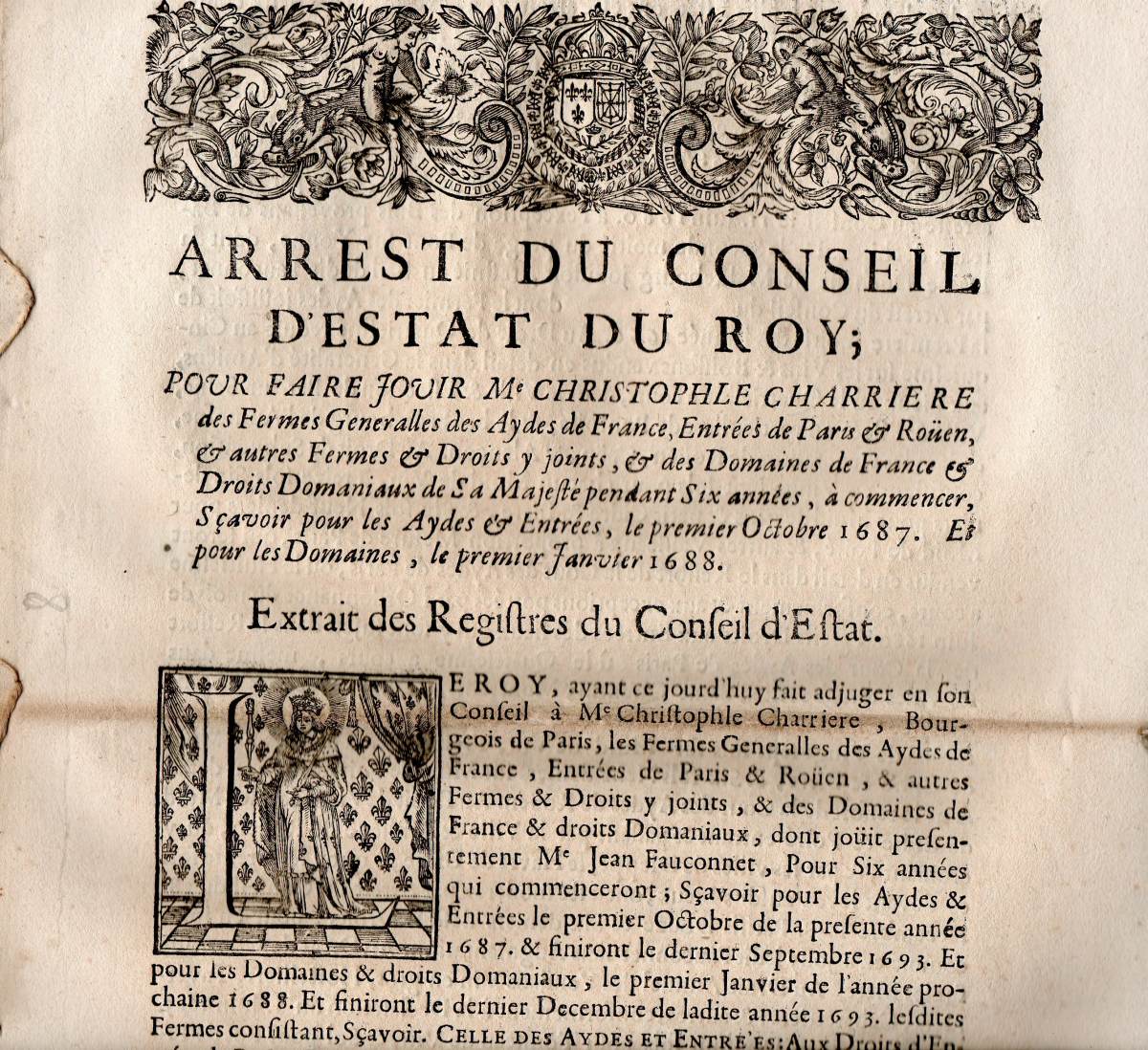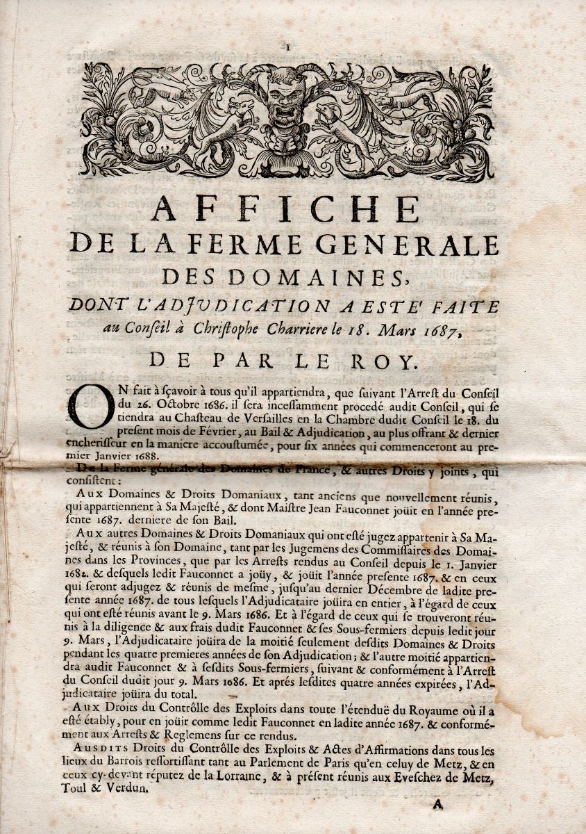 ![Lot 76 - [FERME GÉNÉRALE] - Importante réunion de déclarations, édits, lettres patentes... [FERME GÉNÉRALE] - Importante réunion de déclarations, édits, lettres patentes...](<150:ddoc-447433-ab842bbf79780f6fbe0e88b082eed69b-79_11.jpg, <480:ddoc-447434-62a0965d84a2788fa3b98b31b7fc8cc9-79_11.jpg, <640:ddoc-447435-26a3edb9d28e86e1159dcad6eed63379-79_11.jpg, <900:ddoc-447436-09e4ebbf7d2afb5d2761c352f1f66be9-79_11.jpg, >900:ddoc-447432-f2fa0dc1789ccedebcdd20b8a7944257-79_11.jpg)