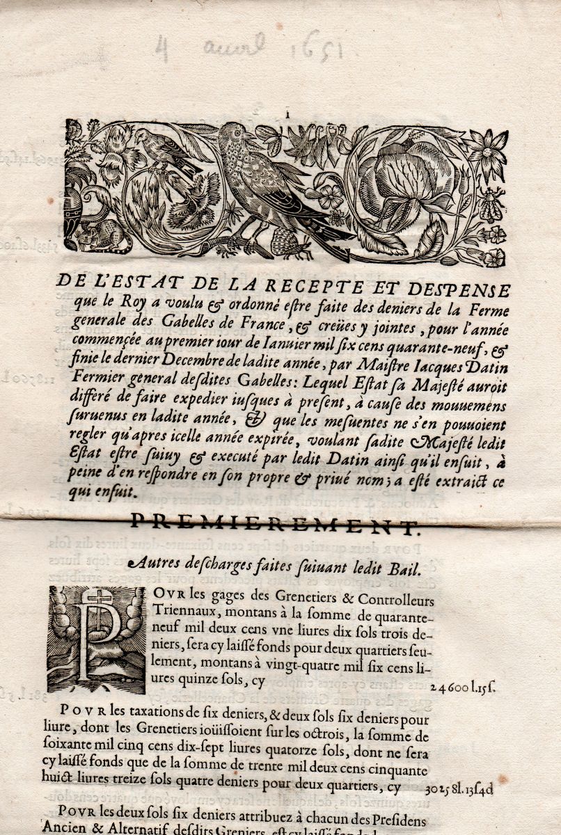 [IMPÔTS - GABELLE - BAUX et RÈGLEMENTS] - Lettres patentes,...