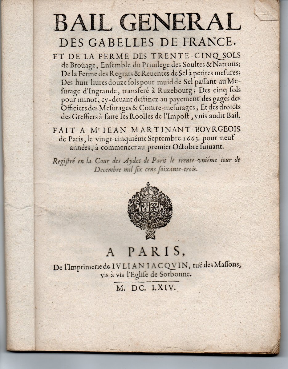 ![Lot 80 - [IMPÔTS - GABELLE - DROITS PARTICULIERS] - Lettres patentes, édits,... [IMPÔTS - GABELLE - DROITS PARTICULIERS] - Lettres patentes, édits,...](<150:ddoc-447750-a0acce0dbc7cadca370c3abf3bb91018-83_10.jpg, <480:ddoc-447751-e84343ec5b22bd8d770af7bff71ae1d6-83_10.jpg, <640:ddoc-447752-0103a203c4133ef52c435337c66dcf5e-83_10.jpg, <900:ddoc-447753-327cc4c78358d08e948c66af8a16e9cc-83_10.jpg, >900:ddoc-447749-4baf67b409200e7762375b5c05f3f66f-83_10.jpg)