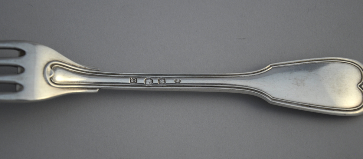 Deux couverts et une cuillère : Belgique, 800. Maître-orfèvre : Delheid frères.