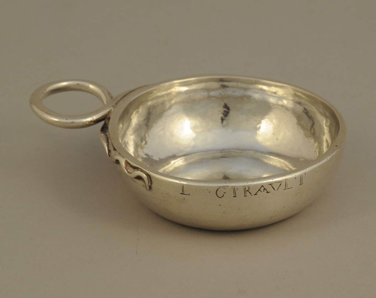 TASTE-VIN en argent uni. Anse à serpent enroulé. Gravé "L GIRAVLT".