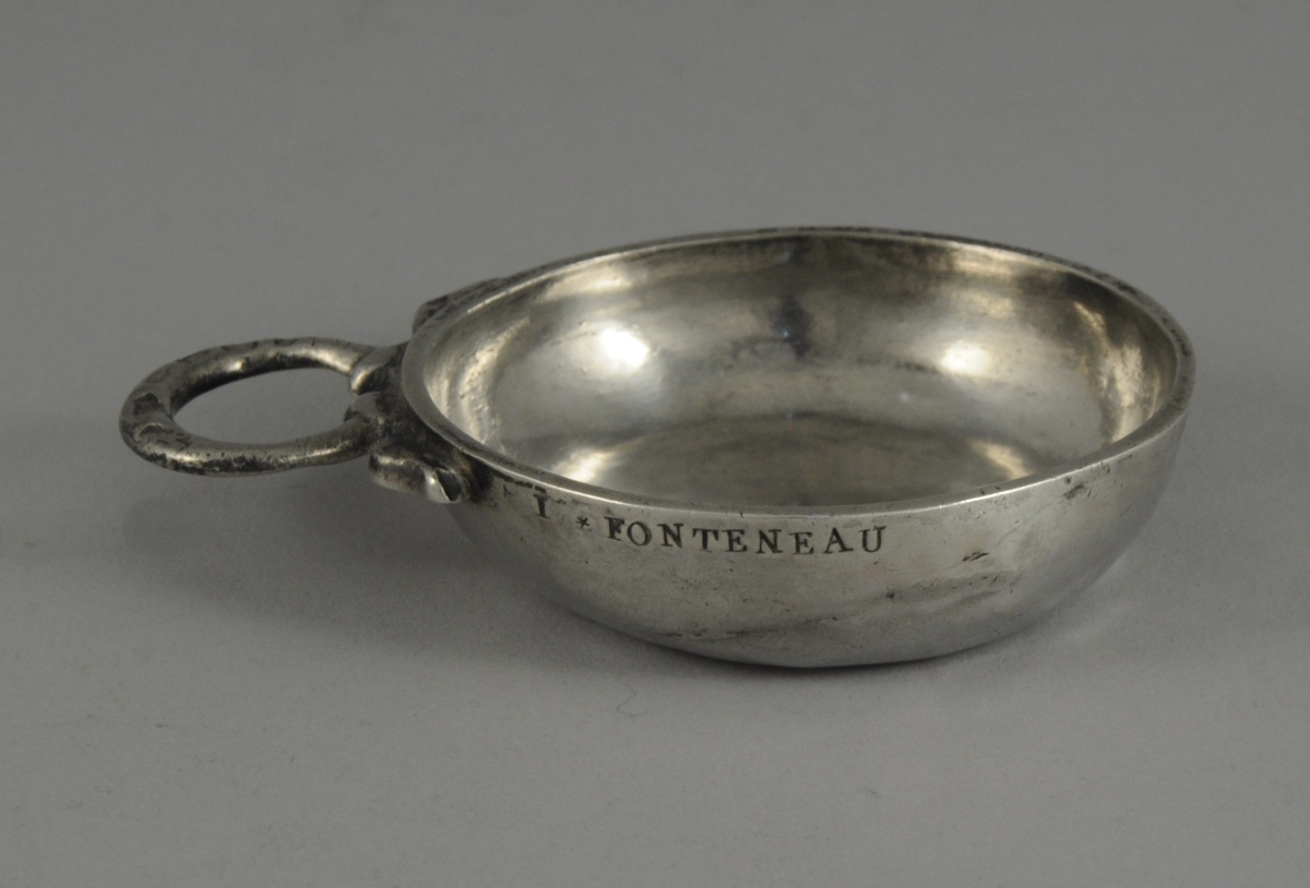 TASTE-VIN en argent, l'anse serpent enroulé.Province, probablement Nantes, XVIIIème.Maître-orfèvre :...