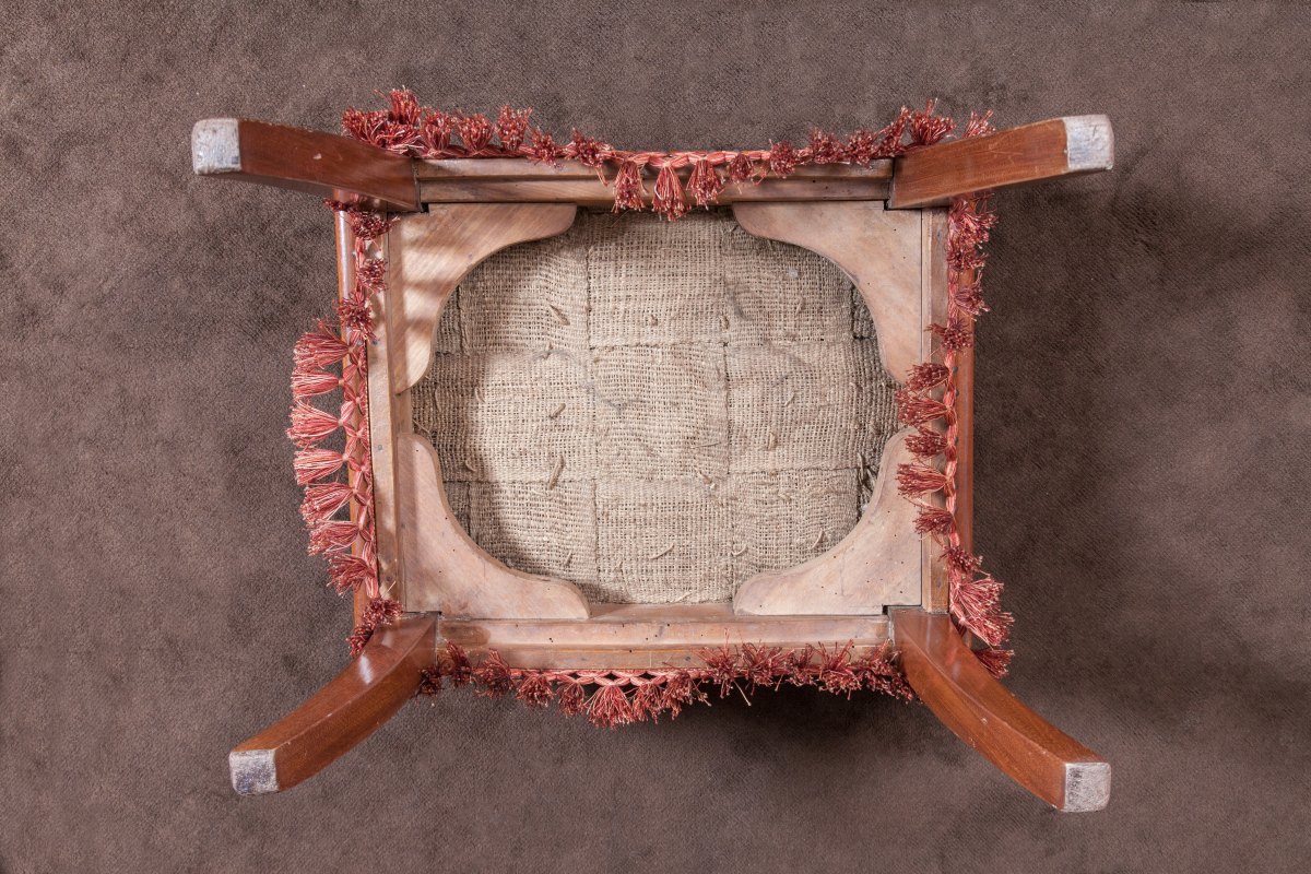 Garnis d'une tapisserie au point à décor de couronne feuillagée et fleurons.