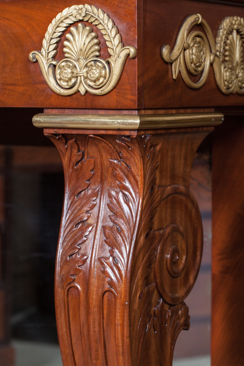 Fils de François Honoré Georges Jacob Desmalter et petit fils de Georges Jacob, il est le dernier représentant de la plus importante dynastie d'ébénistes qui participa à l'essor et la diffusion du gout français de l'époque Louis XVI à la monarchie de Juillet. Fournisseurs de la Cour et de la famille royale sous l'Ancien Régime, ils durent leur salut et la survie de l'entreprise à la protection du peintre David. Dès le Consulat, ils bénéficièrent des commandes de Bonaparte et deviendront les plus importants fournisseurs du mobilier impérial. Georges Alphonse Jacob-Desmalter (qui a commencé sa fonction chez l'architecte Percier) participa à la rénovation du style du mobilier en développant le style néo-gothique et gothique troubadour. Ainsi, dans la période 1825-1831, où il utilise l'estampille frappée sur notre console, il meuble le château de Rosny de la Duchesse de Berry. Dans cette période de transition, notre console est l'une des dernières réalisées dans la tradition du mobilier néoclassique impérial.
