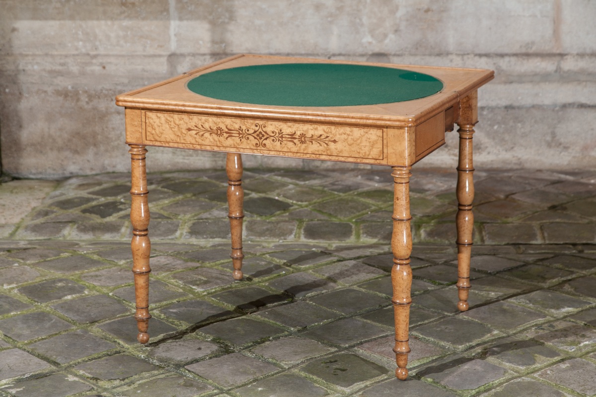 TABLE À JEUX à plateau serviette en placage d'érable moucheté...