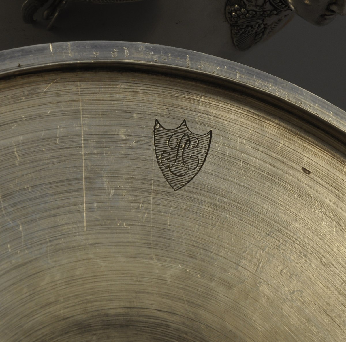 L'envers du couvercle et du pied gravés d'un écu monogrammé "PC".