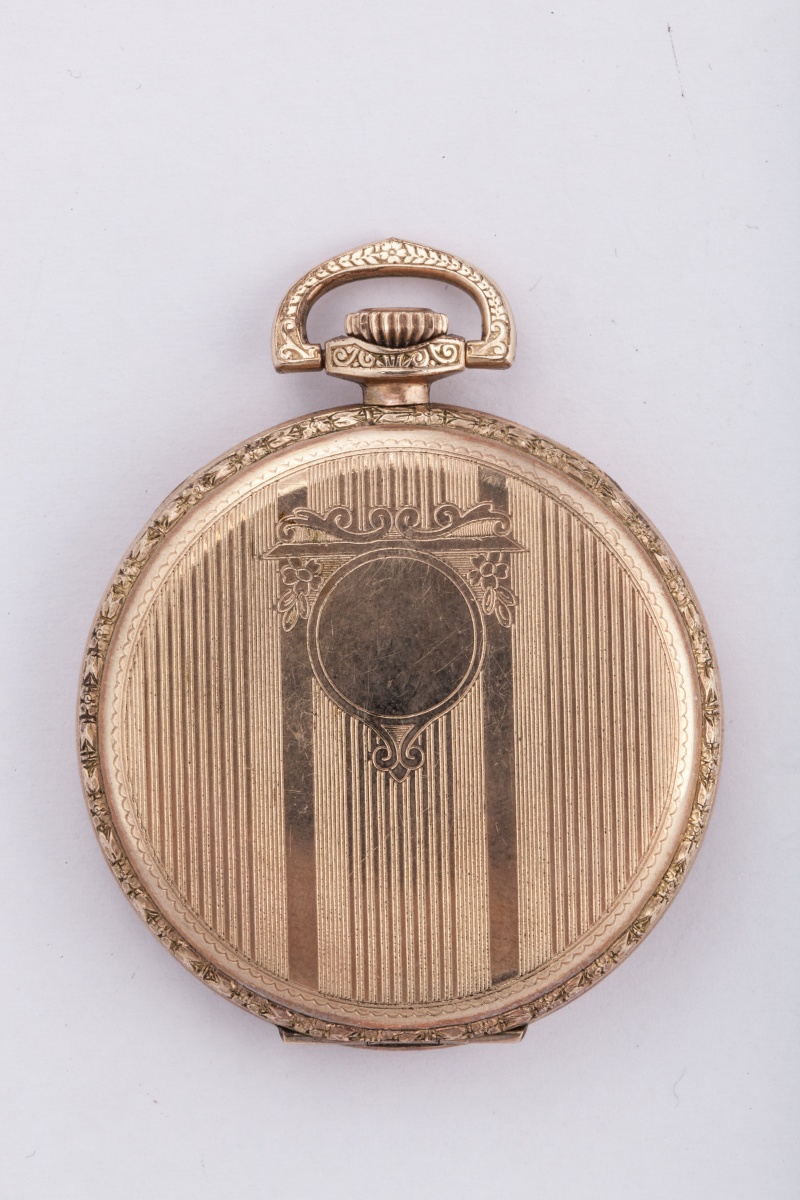 REMONTOIR d'homme en or guilloché. Signé et numéroté WALTHAM.