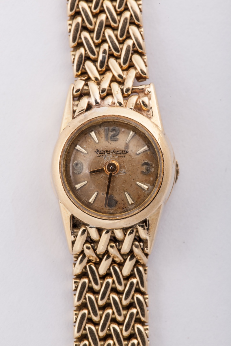 JAEGER LE COULTRE. MONTRE-BRACELET de dame en or. Le cadran circulaire numéroté "120416", le bracelet souple.