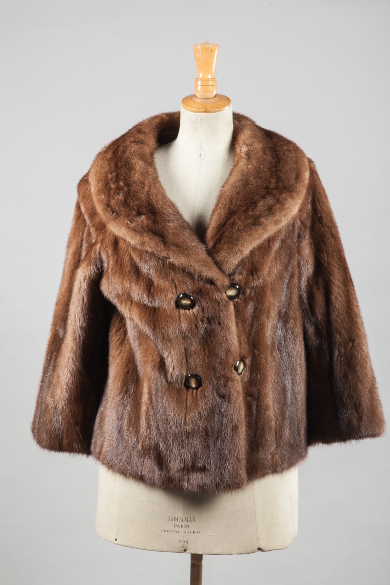 SCHIAPARELLI. VESTE en VISON.Griffé "SCHIAPARELLI. PARIS".Taille : 40/42.