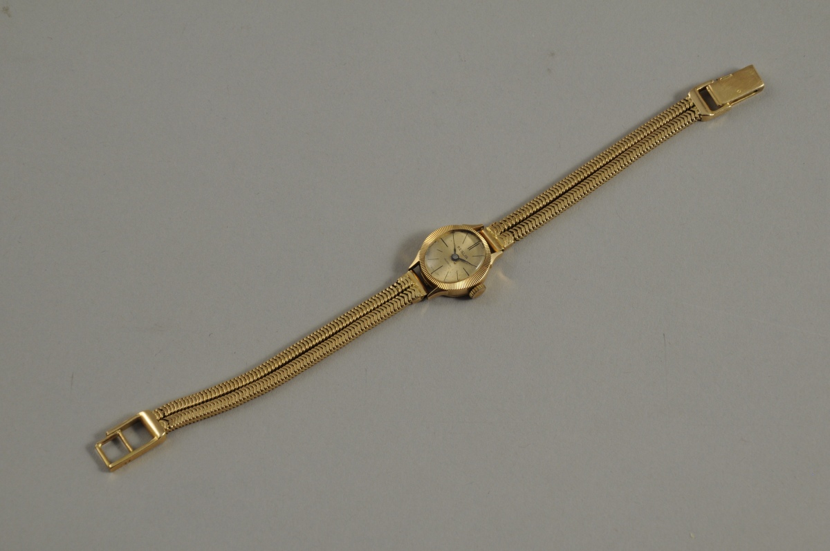 MONTRE bracelet de dame en or jaune, le boitier circulaire signé Réglia, bracelet à deux bras en or jaune. Poids brut 30,4 g.