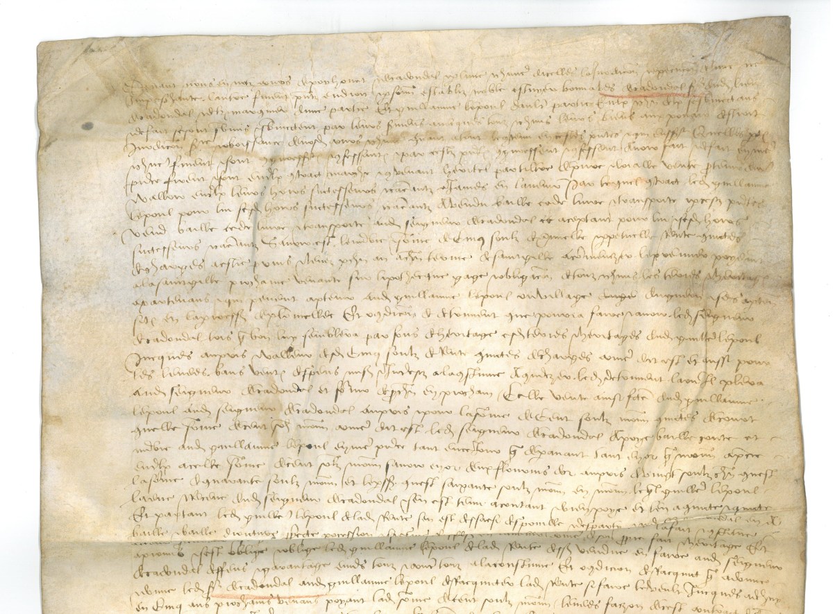 Famille de CADOUDAL. P.S. par deux notaires, bourg de Plomellec 22 septembre 1496 ; vélin grand in-fol. Contrat d'acquisition de rente par Bonnabes de CADOUDAL.