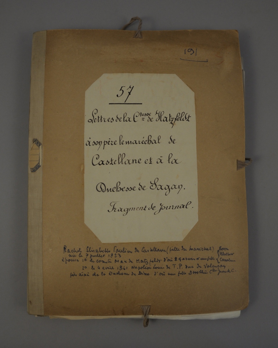 Pauline de CASTELLANE, comtesse de HATZFELD, puis duchesse de TALLEYRAND et de SAGAN (1823-1895) fille du maréchal de Castellane. 2 L.A.S., Paris 1843-1851, à SON PERE le maréchal de CASTELLANE, et copies manuscrites de 44 lettres à sa future belle-mère, Dorothée de Courlande duchesse de SAGAN, 1848-1860, et d'un extrait de son journal intime, 1846 ; 5 pages in-8 autographes et 218 pages formats divers (dactylographies jointes).