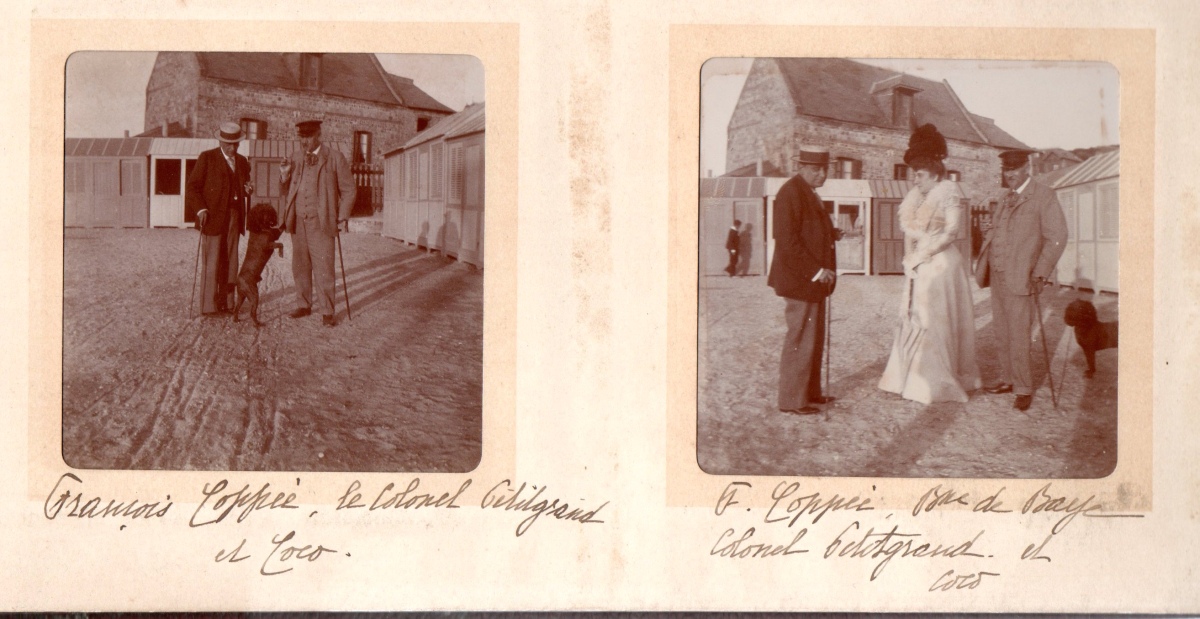 Joint - un album photographique intitulé " Souvenirs de Veules les Roses, juillet-août 1899 ", plus de 40 tirages photographiques sur papier albuminé, 9 x 9,5 cm, activités à la station balnéaire : vue de plages - Marie Louise et Yolande au bain - Madame LAVEDAN (épouse d'Henri LAVEDAN, journaliste et auteur) - Joseph et Marie de BAYE - Marquise de LENTILHAC - vue du château de Cany - Famille de LAMBERTYE - Pierre de FREDY, le baron de COUBERTIN - Madame BALLEY poétesse - François COPPEE (poète et dramaturge) - Colonel PETITGRAND ; - 5 photographies de tableaux représentant des ascendants de la famille de BAYE et 4 photographies, 3 portraits et groupe de personnes, XIXe siècle ; - 12 clichés négatifs et 12 tirages positifs représentant l'intérieur du château de Baye avant le pillage de 1914 ; - catalogue de vente aux enchères des objets d'art et d'ameublement provenant de la succession de la marquise de Baye, 19 mai 1930.