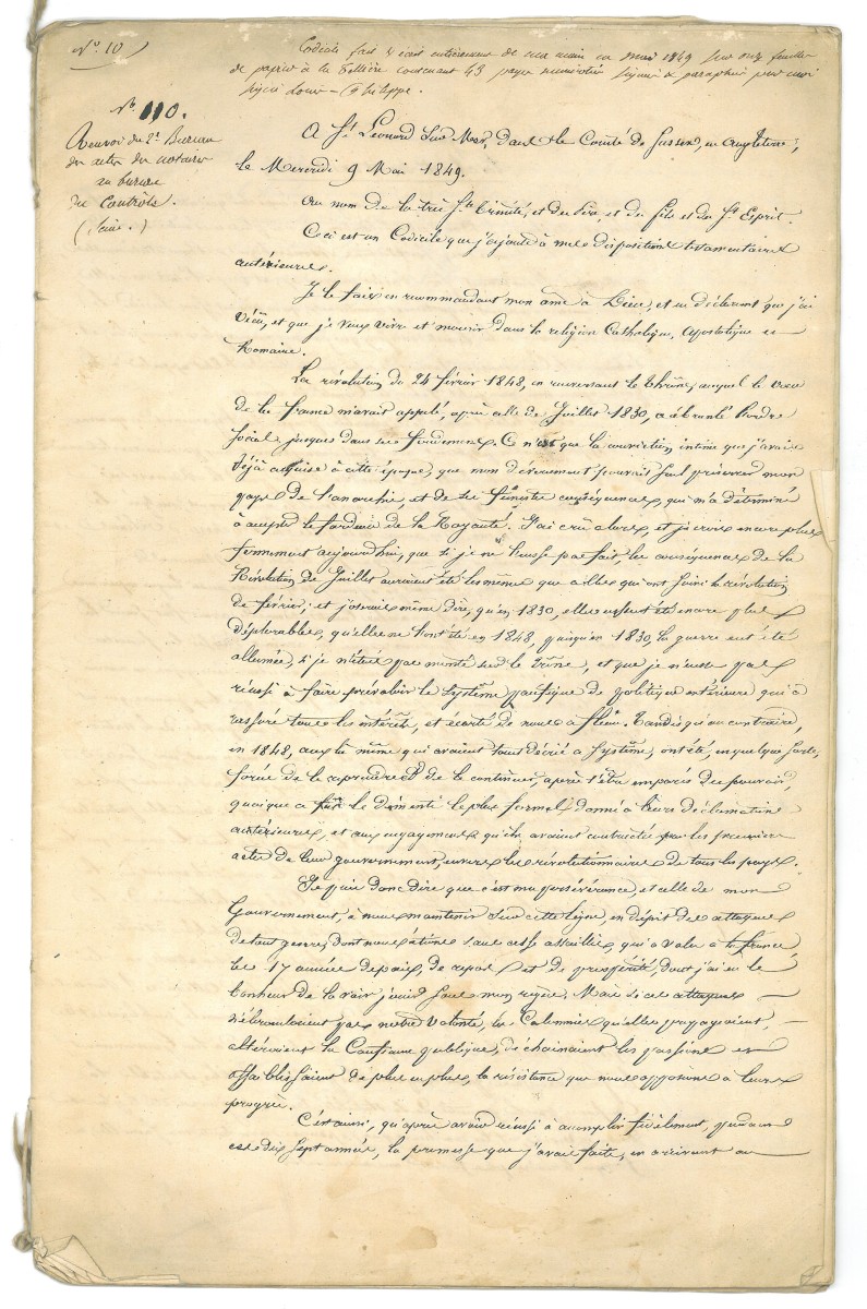 Manuscrit autographe, copie ancienne du testament du 9 mai 1849.