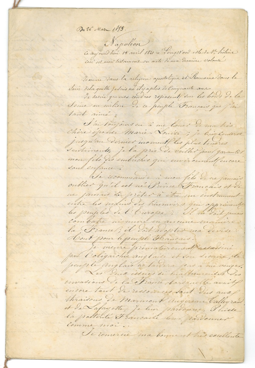 - 3 pages in folio recto-verso, "instruction pour mes exécurteurs testamentaires", 26 avril 1821.