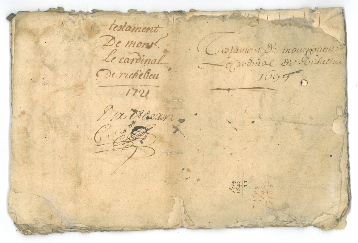 EXPÉDITION ancienne du testament du cardinal de RICHELIEU.