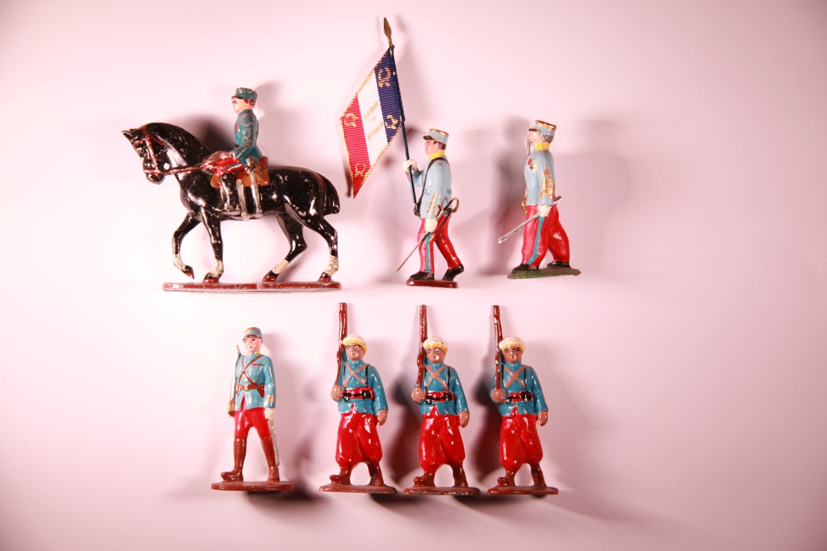 QUIRALU, France. 13 Tirailleurs marocains au défilé. Culotte rouge. Epoque...