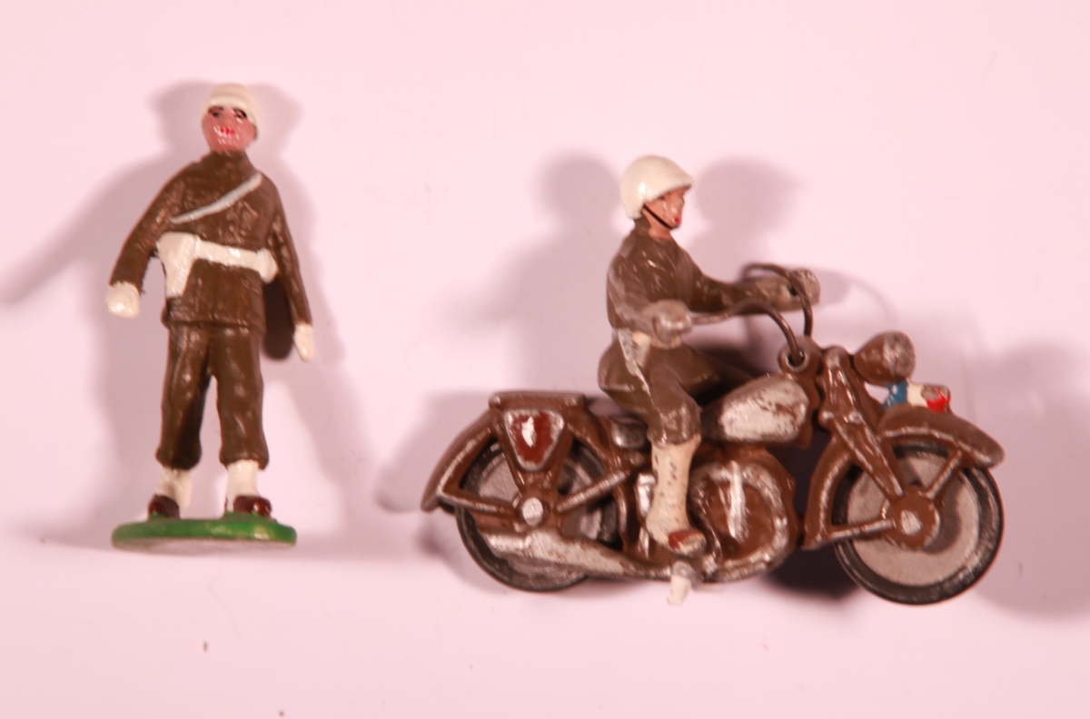 QUIRALU, USA. 9 figurines de Police militaire : 6 fantassins, 3 motocyclistes.