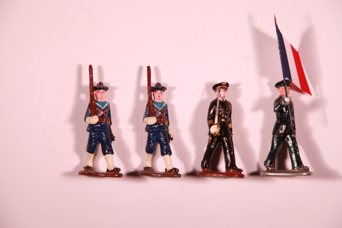 QUIRALU, France. 16 Marins au défilé en tenue veste et pantalon bleu marine : 12 soldats. Epoque : 2nd Guerre Mondiale.
