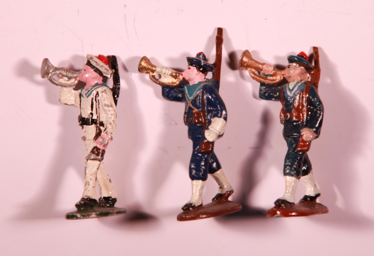 QUIRALU, France. 11 figurines, Marine, Musique, Clairons : 3 tenues blanches, 8 tenues bleues.