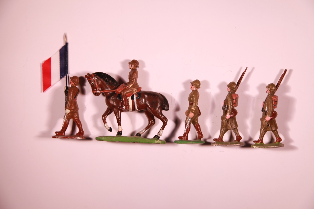 France. 24 figurines Armée de terre : 18 soldats, 1 officier, 3 sous-officiers, 2 porte-drapeaux.