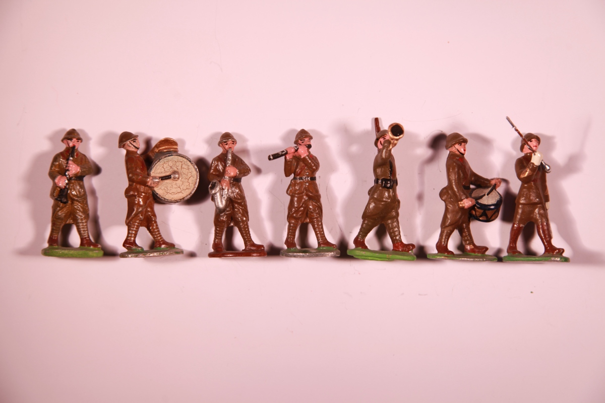 18 figurines de l'Armée de terre : 17 musiciens et 1 tambour major.