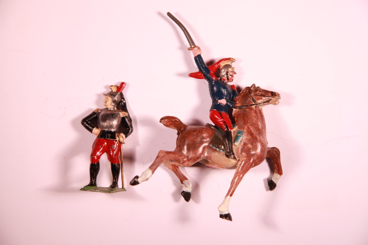 France. 2 figurines : 1 cuirassier à cheval, 1 cuirassier à pied.