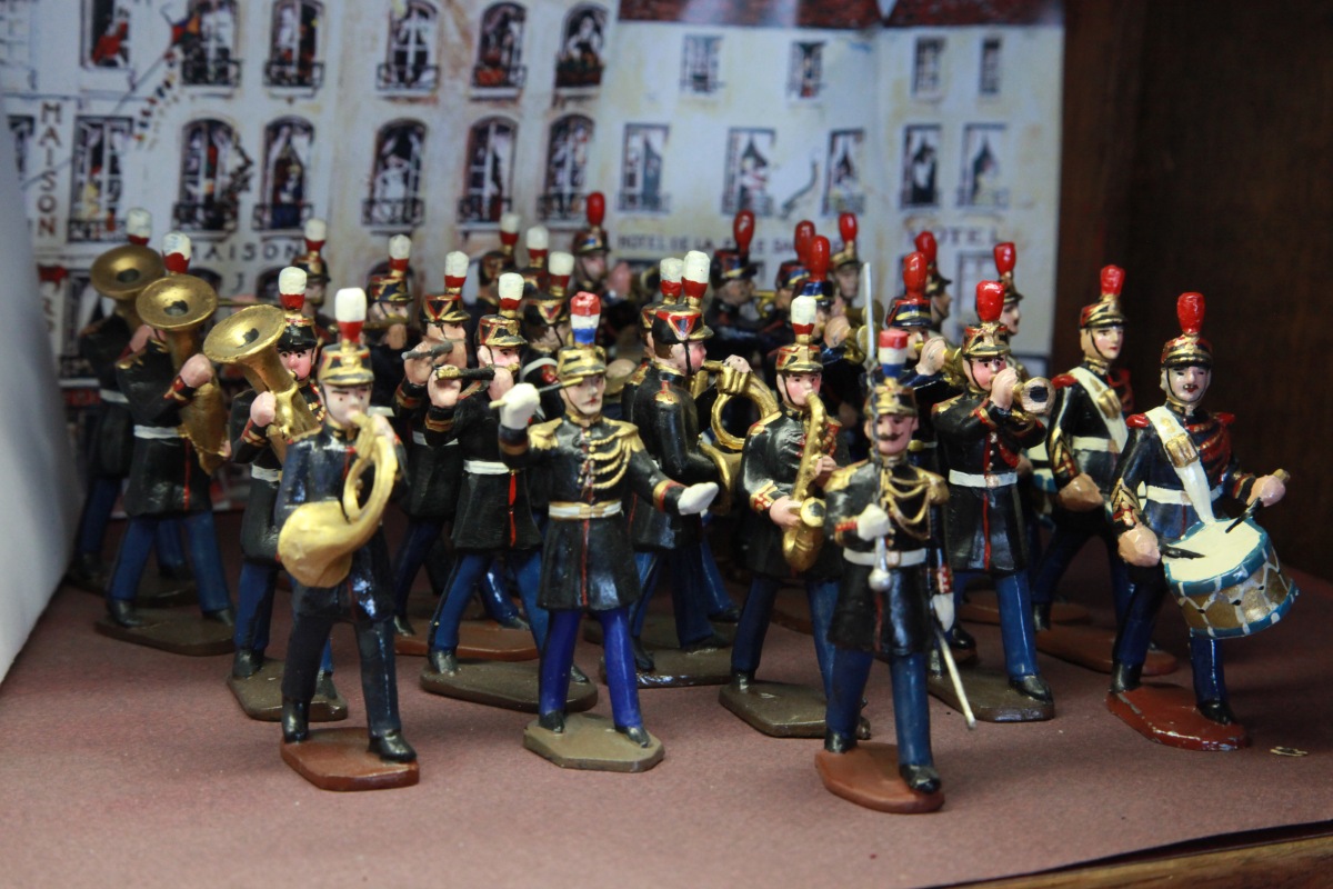 France. 27 figurines de la Garde Républicaine. Musiciens : 11 plumets rouge, 14 plumets blanc, 2 plumets tricolore. Epoque : Défilé de la Victoire, 1919.
