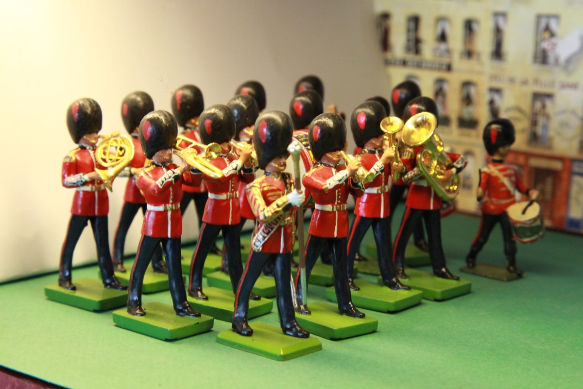 BRITAINS, Grande-Bretagne. 16 figurines de Coldstream Guards. Musiciens. Epoque : Trooping the Colour.