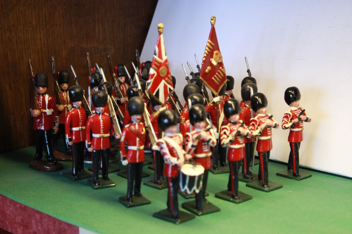 Grande-Bretagne. 29 Guards, 5 musiciens, 24 fusil sur l'épaule. Epoque : Trooping the Colour.