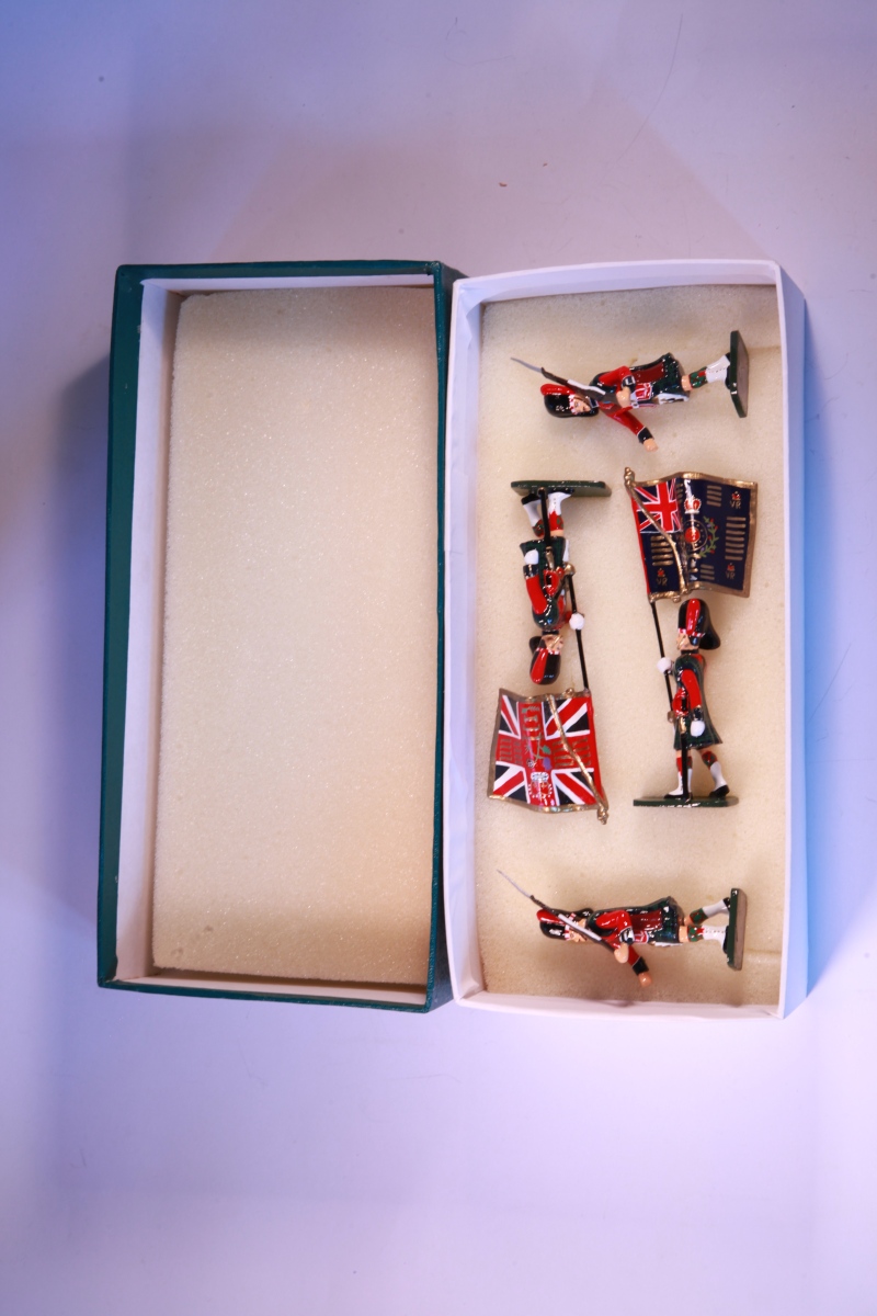 FRONTLINE FIGURES. Edition limitée. n°77/1000, Grande-Bretagne. 4 figurines : Black Watch, The Royal Highland Regt, Standard Party. Boîte d'origine.